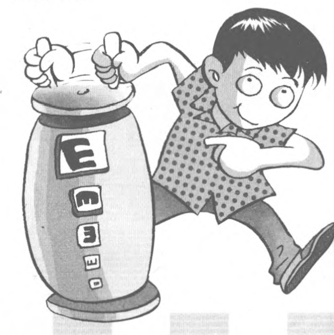 这个视力表的结构很简单,只需把视力表安装在一个可转动的内轴上即可,外面罩上不透明的固定外壳,外壳上开有小窗。转动内轴,外壳的窗口上就会出现随时变化的视力检查符号。用这样的视力表来检测视力,那些想作弊的人可就伤脑筋喽!