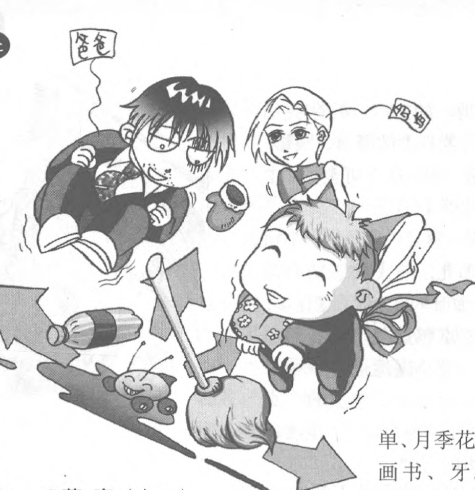 下班了,爸爸妈妈刚踏进门,“呼啦”一下,就像两架直升飞机,一下子飞上了天花板。