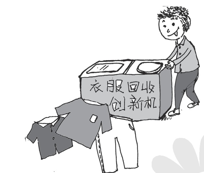 这样我们就可以不断穿着自己设计而又漂亮的新衣服了。同学们,我的衣物回收创新机不错吧!
