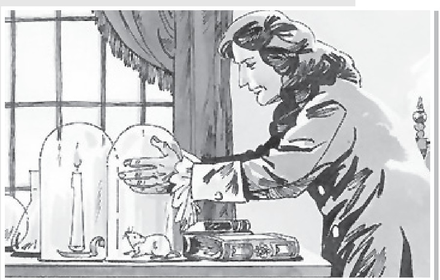 一次,他把点燃的蜡烛放在装有小老鼠的玻璃器皿中,然后盖紧容器。他发现:蜡烛燃了一阵之后就熄灭了,而小老鼠很快也死了。这一现象让普利斯特里意识到空气中还存在着一种“东西”,是这种“东西”导致蜡烛熄灭和动物不能呼吸。