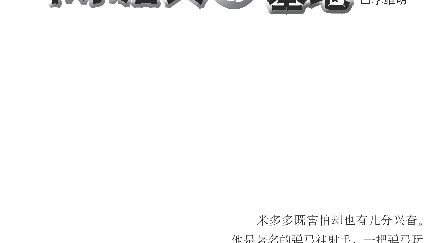 米多多既害怕却也有几分兴奋。他是著名的弹弓神射手,一把弹弓玩得出神入化,在射程之内弹无虚发。为了玩弹弓,他也不知挨了母亲多少次骂。“你玩这个能有什么出息,有这个时间,不如给我多背几个英语单词,或者做几道算术题!”