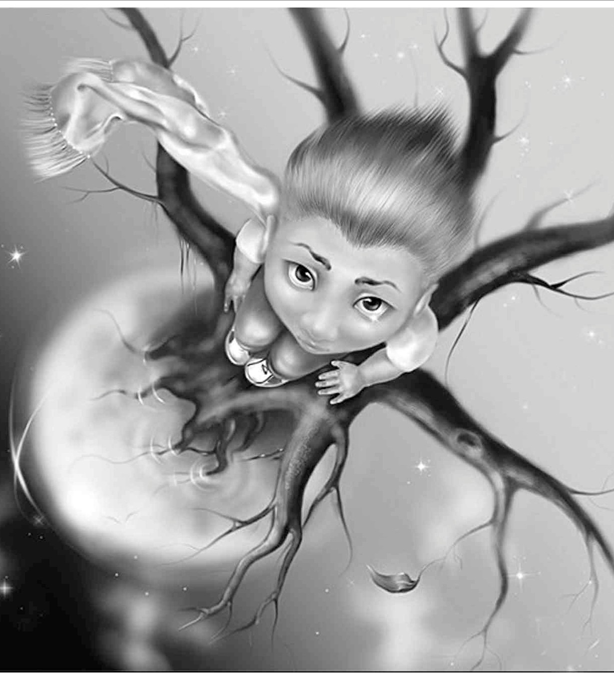 父亲抱起我冲下楼,钻进母亲驾驶的汽车急奔医院,每个通向医院的马路都被挤得水泄不通。医院里等待打星际葡萄糖维持生命的队伍已排到200光年以外,还在不断加长。我父母抱着我焦急地等待,当父亲前进100光年时,灵魂已在我耳旁唱完歌飞向N星球了。