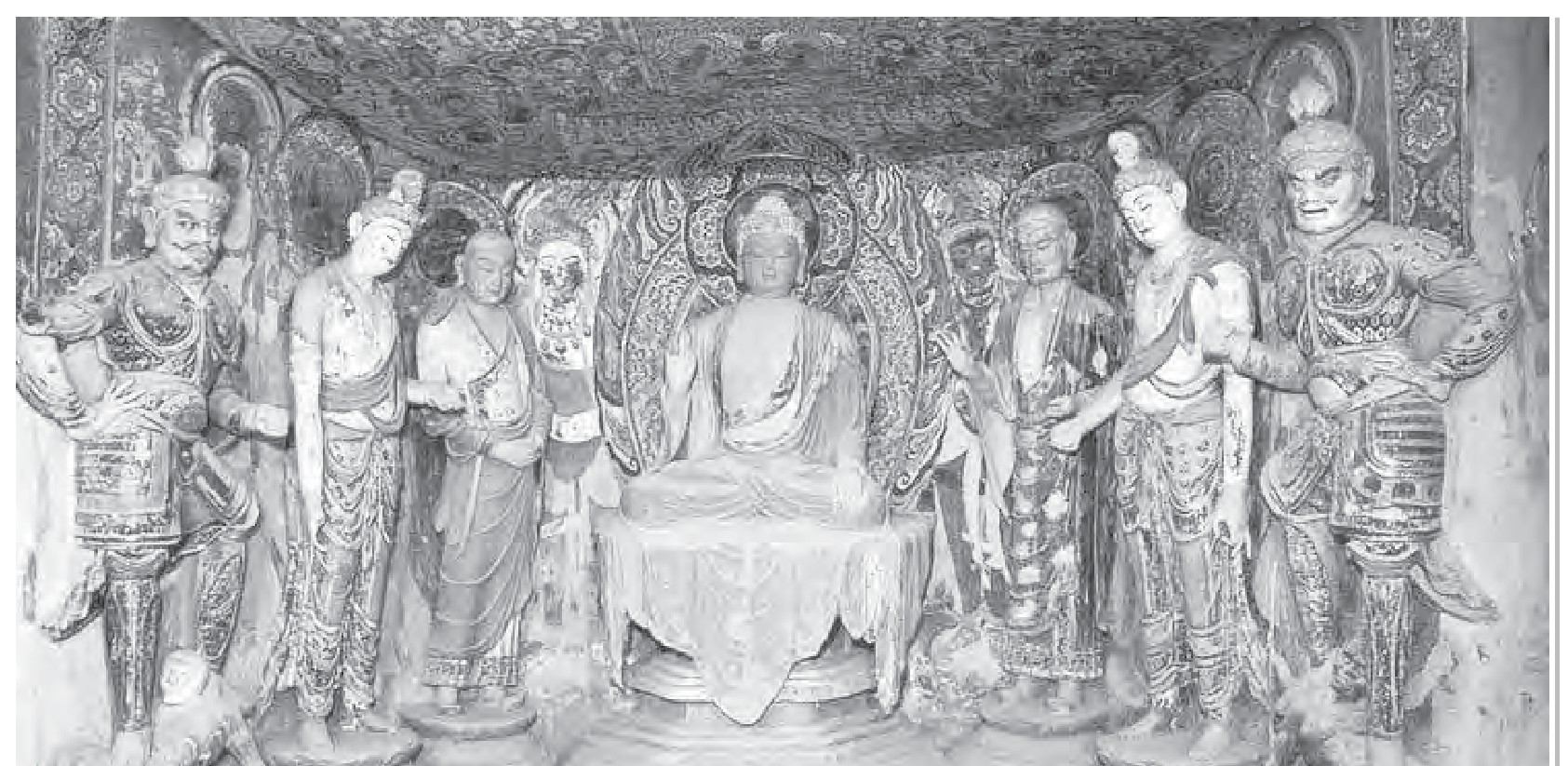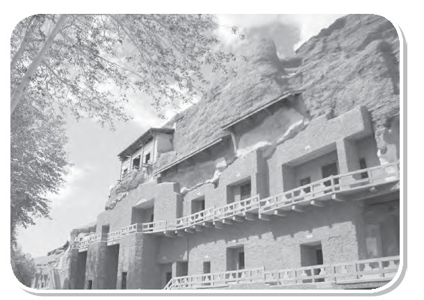 莫高窟建于十六国的前秦时期,距离甘肃省敦煌市有25千米,它南北长约1 600多米,上下排列五层,特别壮观。莫高窟以精美的壁画和塑像闻名于世,现有洞窟492个,壁画4.5万平方米。1987年,莫高窟被联合国科教文组织列为世界文化遗产。