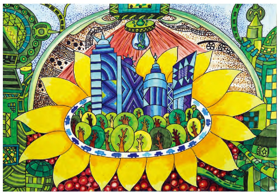 每次看到奶奶身体不舒服,我就会想:人们为什么会生病呢?我相信,只要不断努力,我们将来一定会创造出无病之城!这座盛开在花朵上的城市,空气清新、气候适宜,各种有害细菌都无法在此生存传播。它还自带光感杀菌装置,杀病菌于无形。人们只要住进这座城市,就不用再担心会有疾病的侵扰咯!