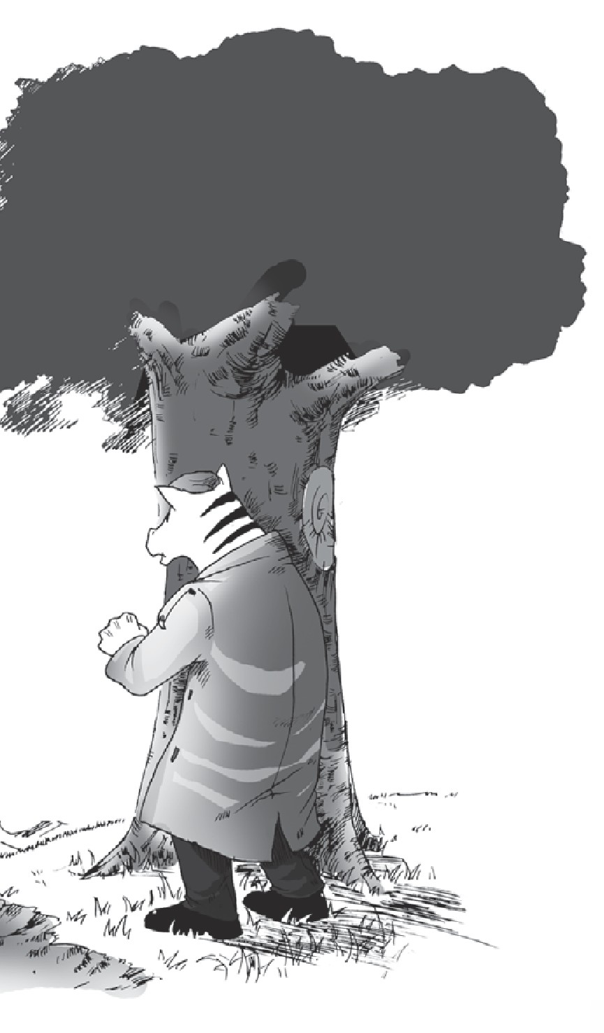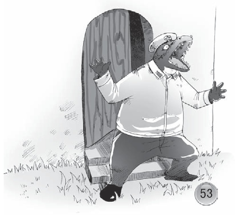 到了山羊家附近,鳄鱼警员一个翻身,就下了车。鳄鱼警员对斑马探长说了声:“谢谢,您先走吧!”下了车的鳄鱼,还探头探脑地四处张望了一会儿。这更引起了斑马探长的注意。斑马探长看到鳄鱼警员东张西望的样子,感觉有些蹊跷,于是猫在山羊家附近的一棵树后,看个究竟。