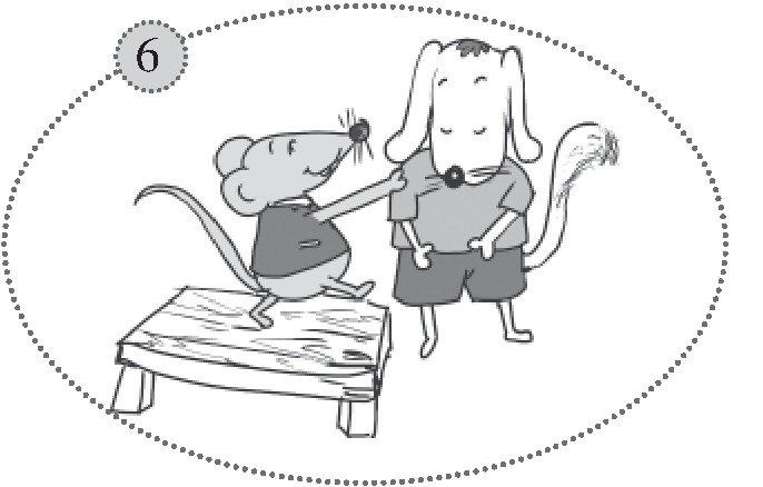 6.(小花狗惭愧地低下了头,承认自己做错了,小老鼠拍了拍小花狗的肩,很高兴。)