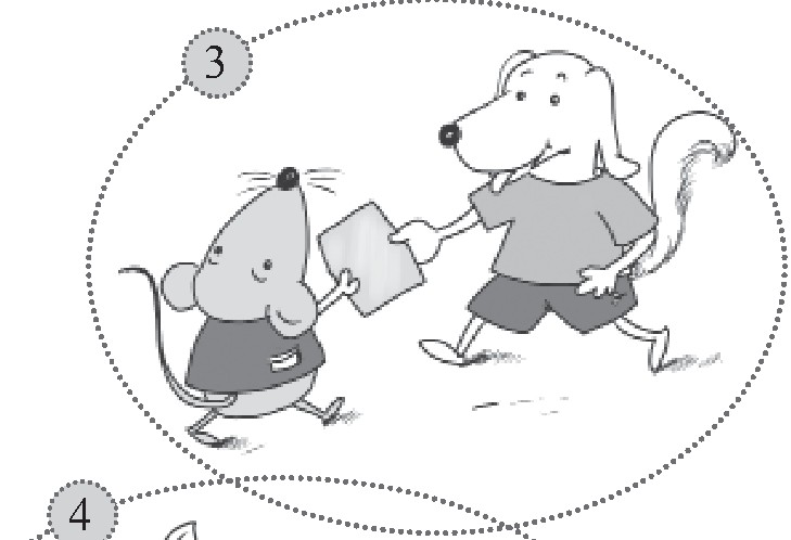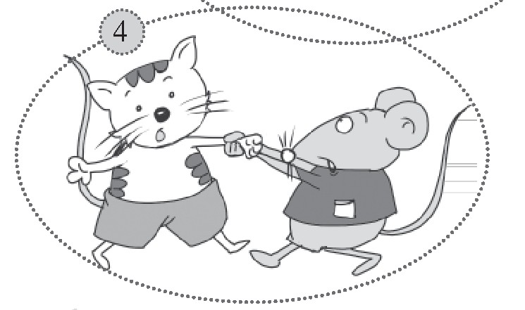 4.(小老鼠一把揪住小花猫要去找老黄牛评理,小花猫很吃惊,小花狗在一边窃笑。)