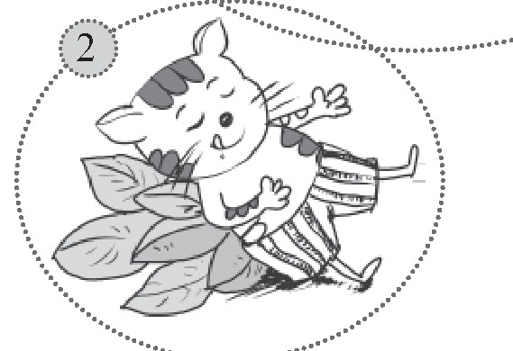 2.(小老鼠看见小花猫正舔着嘴唇懒洋洋地躺在太阳地里晒太阳,很气愤。)