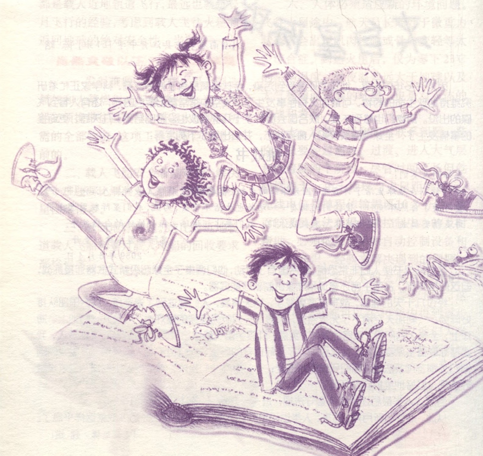 他们上课是在一座固定的大楼里,四五十个人就分成一个班,上一整天的课,傍晚才回到自己家里,在用几十张纸订成的一个小本子上做算术题,写花和草是怎么生长的,画一张图画……第二天,他们把小本子交给一个学生代表,这个代表再把四五十份小本子交给老师,老师用红色的笔在上面写写画画,然后把小本子发回给大家。古人类是很快乐的,他们每天可以看到同学和朋友,不像我们这样,彼此隔绝,见不了面。