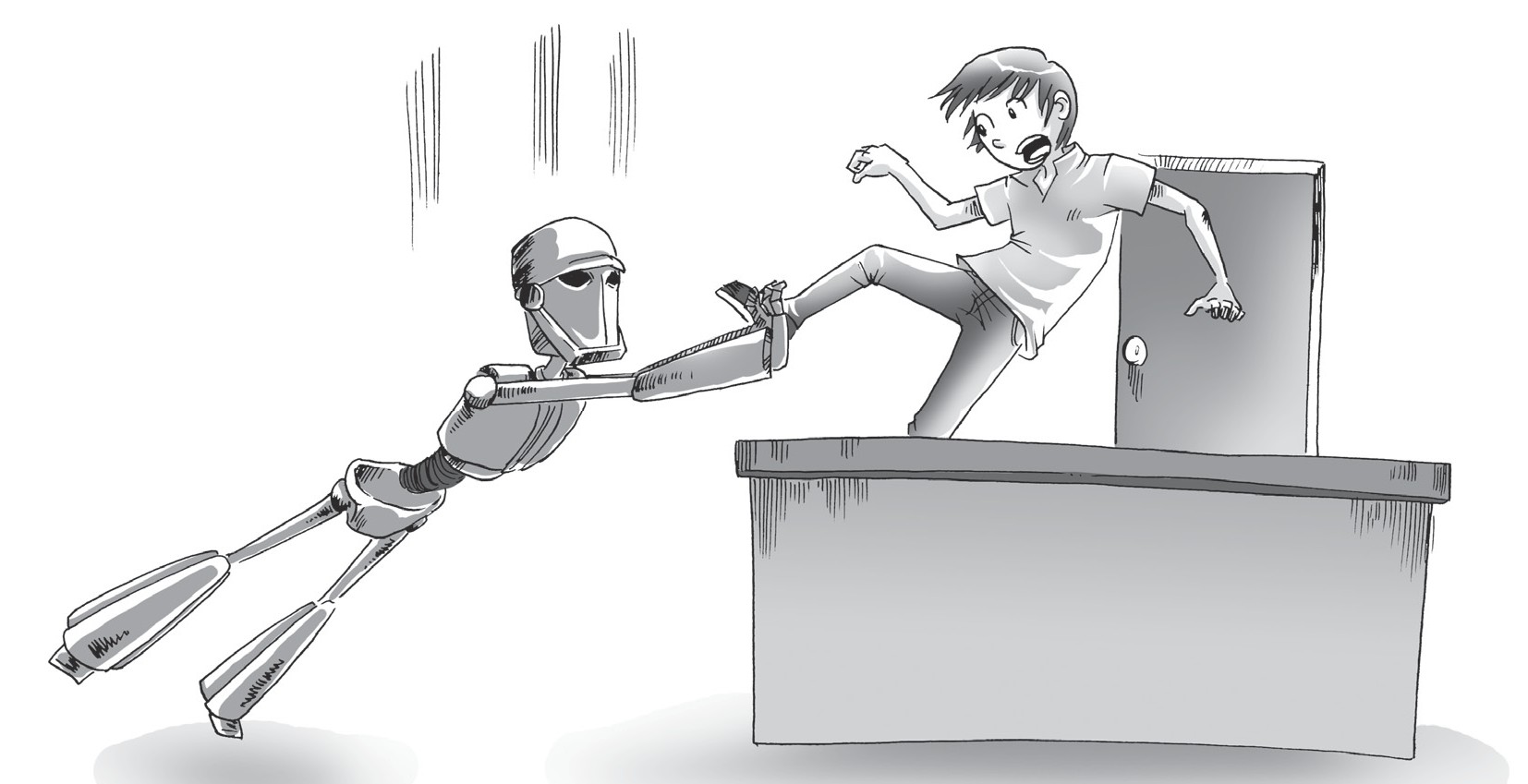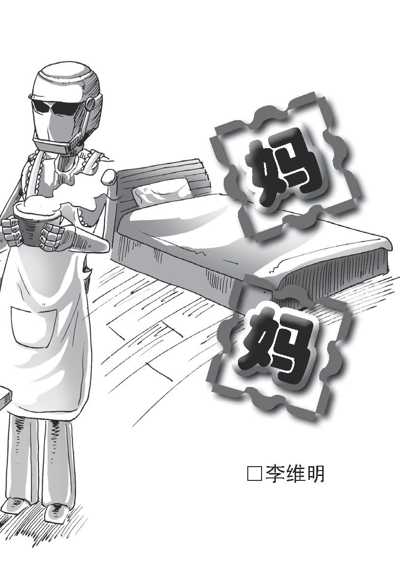 这位妈妈是机器人。军的亲生母亲在他很小的时候死于车祸。爸爸是一个科学家,他悲痛之余,及时移植了妻子大脑里的记忆,并根据她的思维模式制造了一个机器人,这就是军现在的妈妈。机器人妈妈对军无微不至,她的关爱不亚于任何母亲。但随着年龄的增长,军已经愈来愈难以接受她爱的方式和她那有几分笨拙的机器人外形了(因为经常因此而遭到同学们的嘲笑)。没有办法,要升级或者停用(军更倾向于后者),必须等爸爸回来,密钥在他那里。这个思维缜密的科学家竟然会有如此疏漏。他去K星执行勘探任务10年了,明年年底才能返回地球