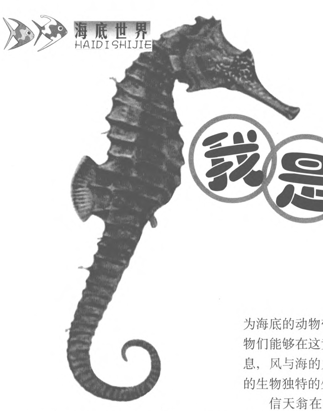 别看我的名字里有一个龙字,其实我既没有恐龙的凶猛与庞大,也没有人类传说中的飞龙的神秘与尊贵,我很普通平凡,甚至有点懦弱,我只能生活在海洋里。