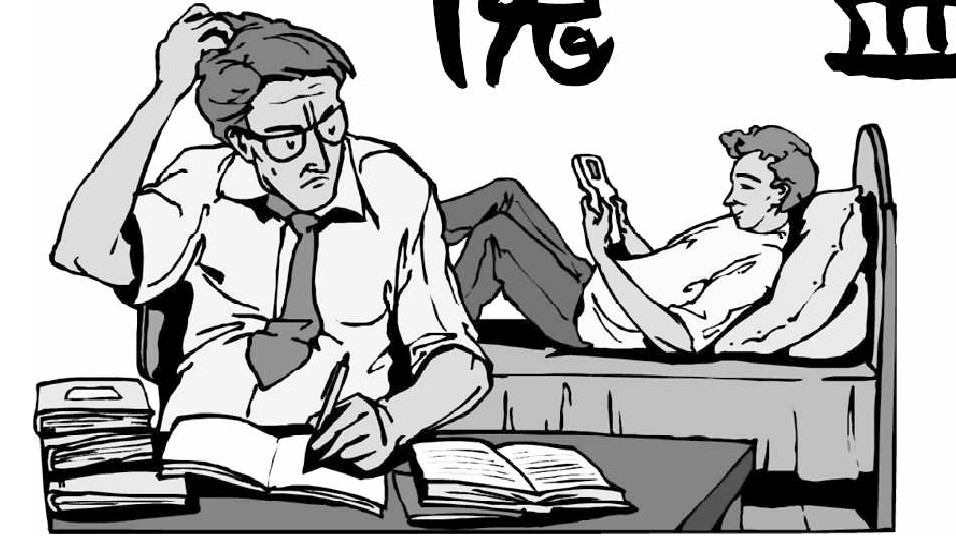 安安带着芳芳,来到他的家门口。安安的爸爸正在和他妈妈说:“安安数学只考了52分,要好好教训教训他!”
