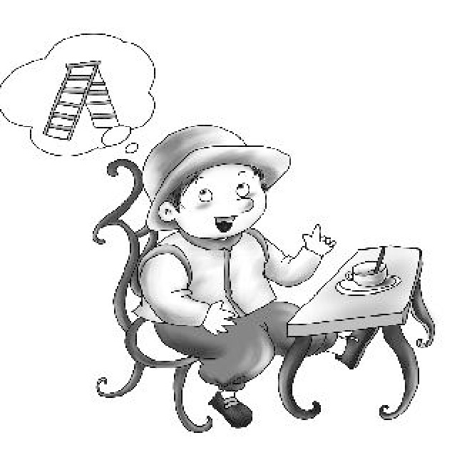 我们平时在家打扫卫生、换灯泡时,站在椅子上够不着,加一个椅子又不安全。买个梯子往往摆放的时间多,用的时间少。我发现我们家使用的椅子的后背很像梯子,所以我利用椅子靠背与椅面的变形,设计了两用梯椅。两用梯椅不展开时,放在居室里是把舒服的椅子;需要使用梯子时,拉起椅子前半部分,然后倒过来即可作梯子使用,使用后再恢复到椅子状态,十分方便。