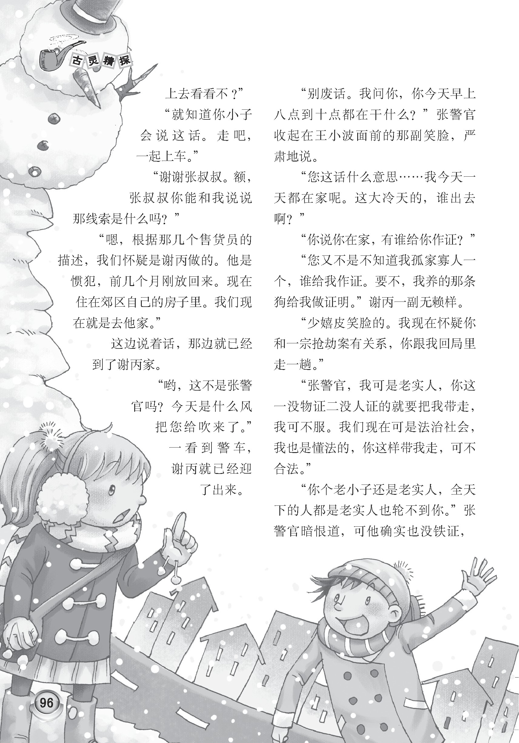 烡?王小泡可没他老爸想得多,他可是前天就和别人约好在中心公园一起堆雪人比赛,看谁堆得有创意。等到了中心公园的时候,王小波一瞧,大家都差不多到齐了,唯独少了他的搭档安真真。“女孩就是麻烦。”王小泡一边嘟囔着,一边看表。过了许久,安真真才不紧不慢地走了过来。
