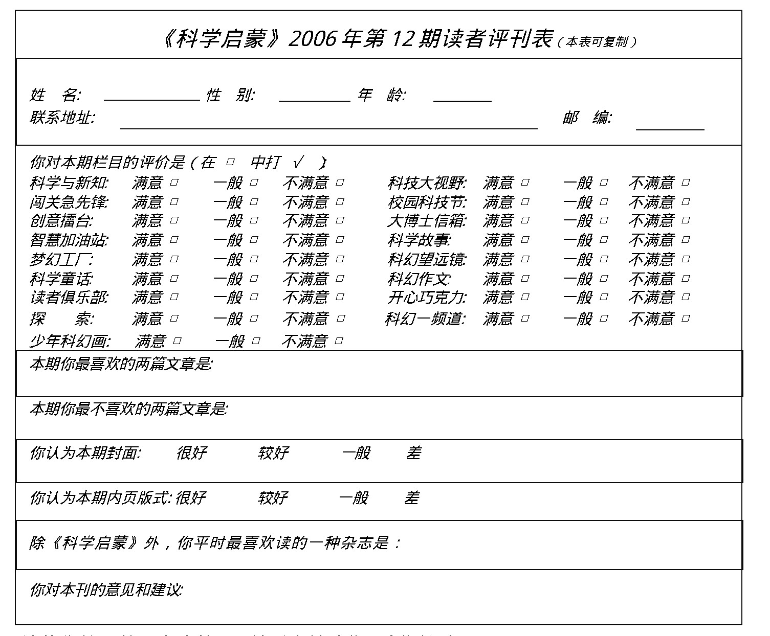 请将你的回答写在表格里,然后寄给我们,我们的地址是: