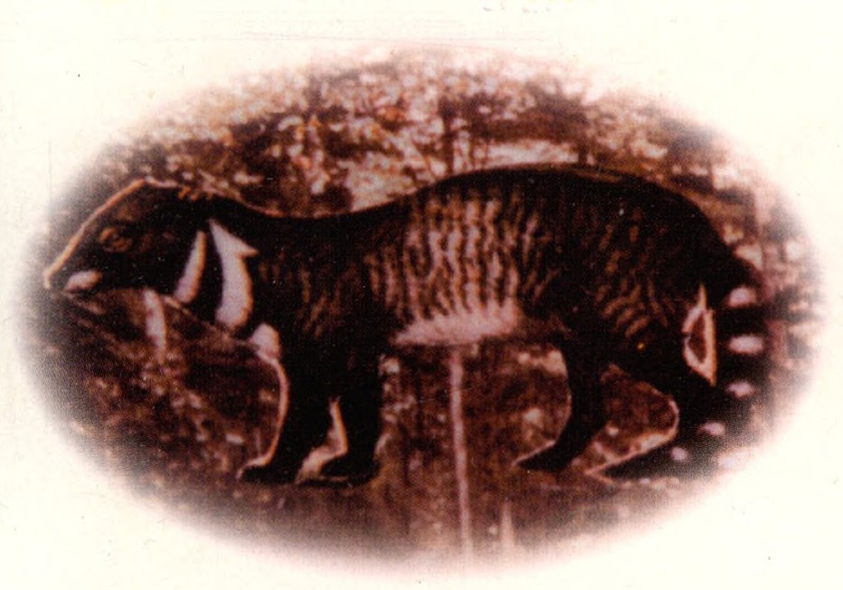 ▲大灵猫:又名九节狸、灵狸、麝香猫。体长约800mm,重达10公斤。体色棕灰,体斑黑褐色;口唇淡白,耳基纯黑,背脊有一条纯黑色的粗硬鬣毛;颈侧与喉部有3条波状黑色领纹,其间夹白色块斑,尾具5-6条黑白相间色环,生活于林缘灌丛或草丛,以小型鸟、兽、蛇、蛙、鱼等为食,主要分布在华南各省。