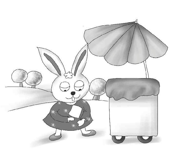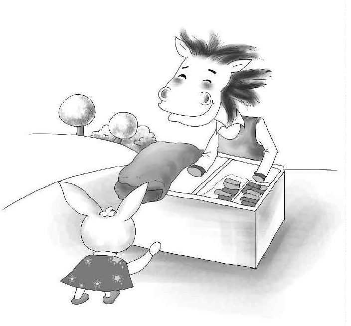 2.(小兔子给马叔叔钱,马叔叔笑眯眯地给她拿雪糕。)