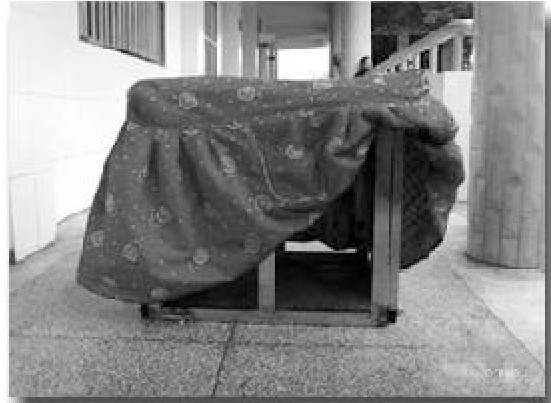 保暖烘罩是南方地区冬季人们取暖常用的辅助器具,它罩在电热取暖器上面,能缩小热辐射的范围,减少热量流失,因而它以保暖、舒适、降低能耗而备受人们喜欢。可是一旦冬季过去,其功能和价值得不到利用。为充分发挥它的作用,增加它的功能,我寻思着改进它。在科技教师的辅导下,我设计出了这种会变脸的保暖罩,它可由保暖罩变成桌,由桌变成茶几,由茶几变成单人梯,由单人梯变成双人梯。变化过程一人可独立操作完成,既方便又实用,还可一物多用。该发明作品具有重量轻、方便安全、适用性强、可折叠、不占空间、便于收藏等优点,同时易于批量生产,可成为家庭生活必备用品。
