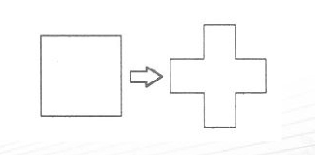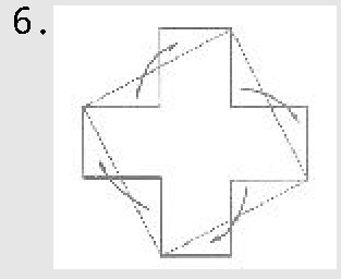 取一张红色的正方形纸,用剪刀把纸剪成5块,然后做成一个十字架。