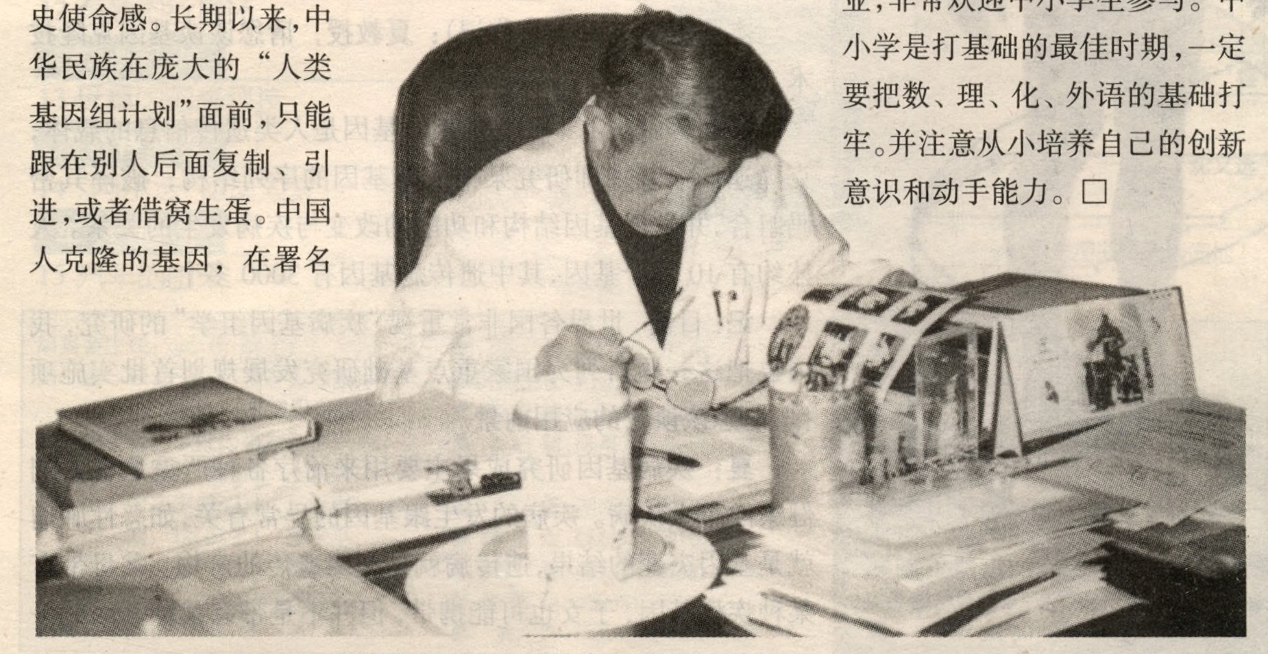 夏:生命科学将是21世纪最有前途的事业,非常欢迎中小学生参与。中小学是打基础的最佳时期,一定要把数、理、化、外语的基础打牢。并注意从小培养自己的创新意识和动手能力。口