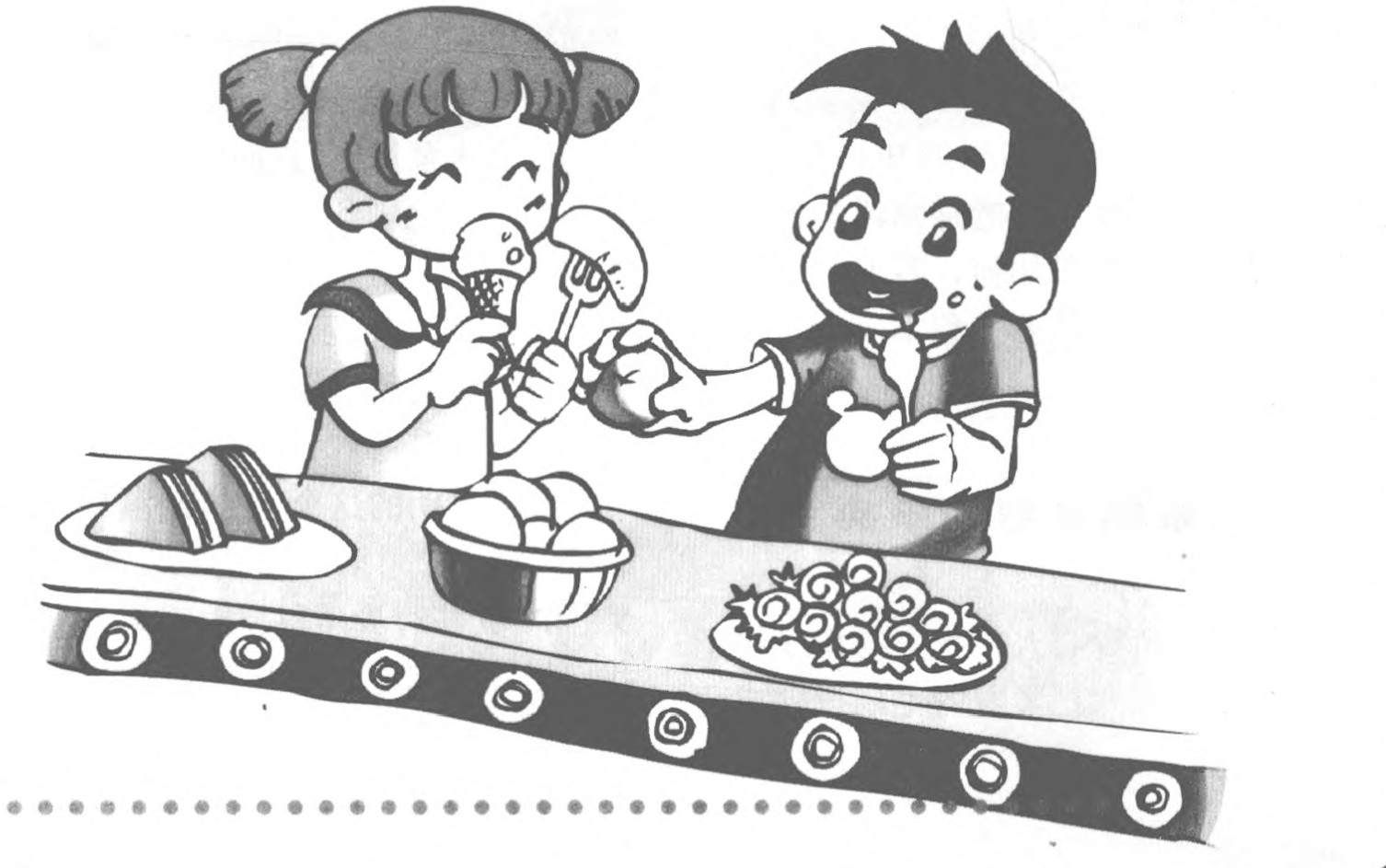 我们学校是寄宿制学校,去食堂买饭时要排很长的队,打饭菜的师傅们又累又热,排队的学生们也等得很辛苦。我想学校可以把摆饭菜的台子设计成一条能够自动传输的流水线,发明一种智能餐盘,你想加多少饭、打什么菜,只要告诉智能餐盘,然后把它放到流水线上,它就会自动传到总服务台,向大师傅报告你所点的饭菜。待大师傅手脚利落地打好饭菜后,你径直去领取属于你的盘子就行了,食堂的效率一定会大大提高。