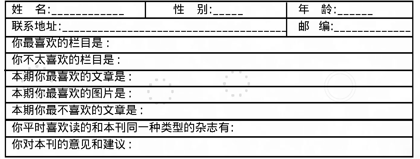 请将你的回答写在表格里然后寄给我们,我们的地址是:
