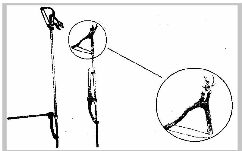 我最终设计出了方便耐用的摘果器。我设计的摘果器塑料圈的直径一般为15cm,网兜要用有伸缩性的尼龙网兜,这样大小果子都可以进网兜且不互相碰伤。手杆可用有伸缩性的铁杆或塑料杆,如废弃的钓鱼杆或可以拉长又可缩短的拖把杆等。