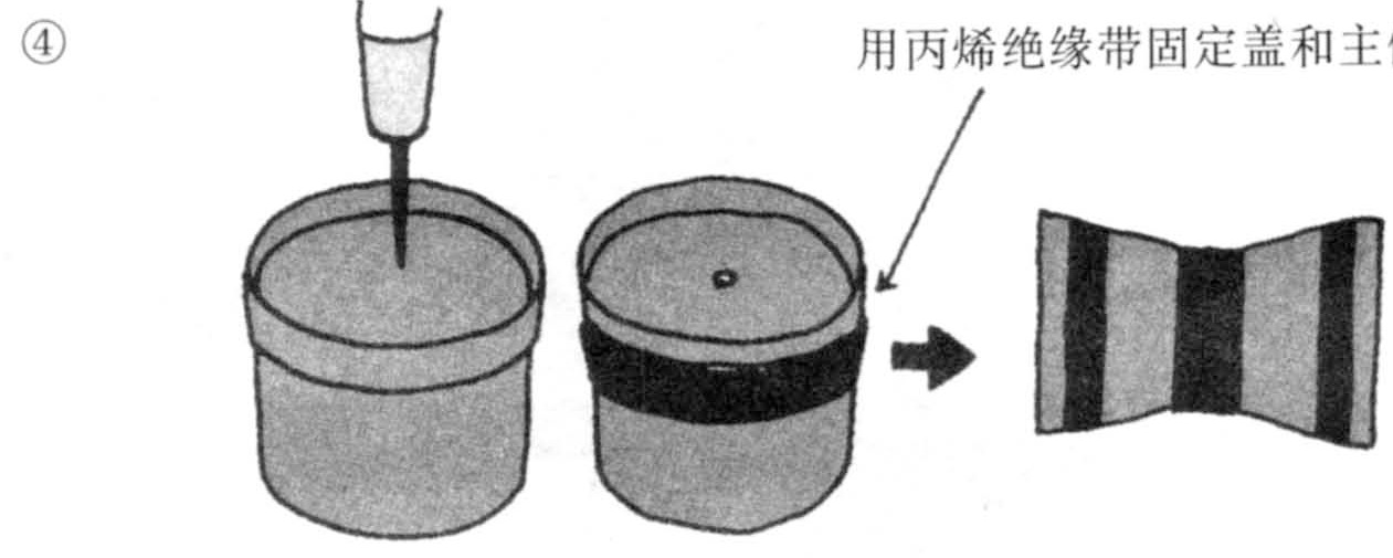 在空冰激凌盒(带盖)上打孔,丙烯绝缘带连接两个底。