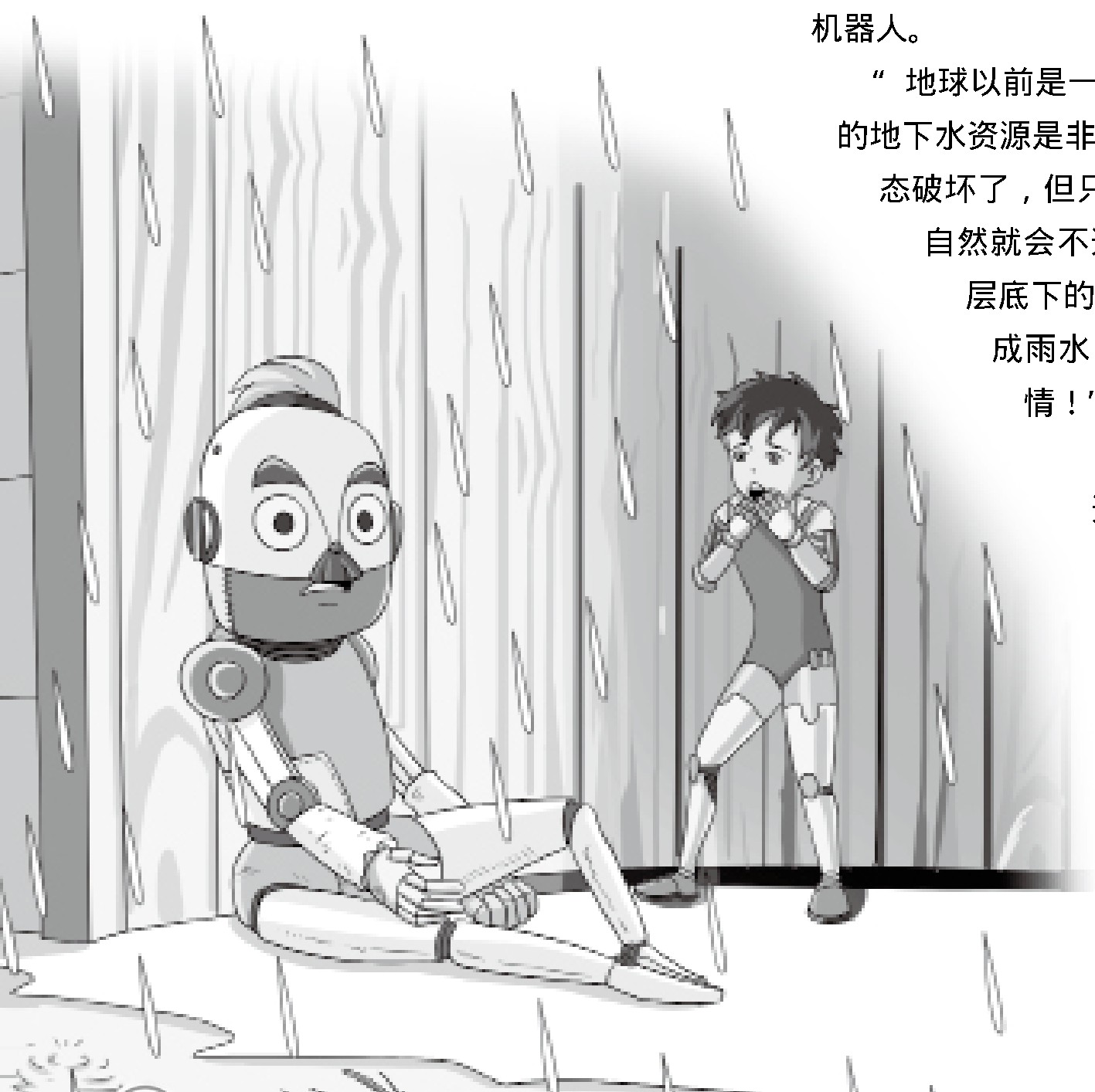 “地球以前是一个美丽的蓝色星球,它的地下水资源是非常丰富的,虽然现在生态破坏了,但只要太阳能够发光发热,自然就会不遗余力地挖掘蕴含在地层底下的水分,然后聚集起来变成雨水,所以下雨是迟早的事情!”老机器人叹息道。