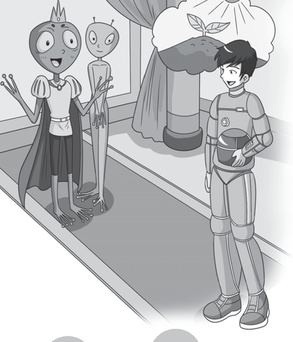 不知不觉就到了国王的宫殿前,宫殿通体紫色,好像是用某种檀木建成的。一见到国王,他就很有礼貌地请我坐下说:“尊敬的地球人,我代表全体绿星人欢迎你的到来,我们星球上的公民都想与你们地球人做朋友。”