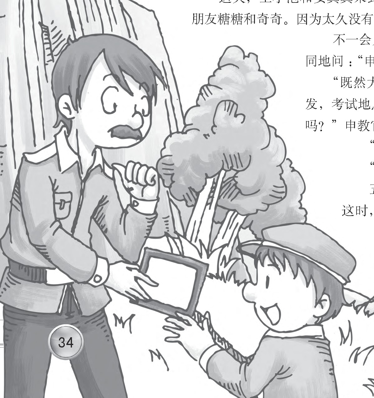 不一会儿,申教官就来了,小侦探们不约而同地问:“申教官,我们在哪儿考试?”