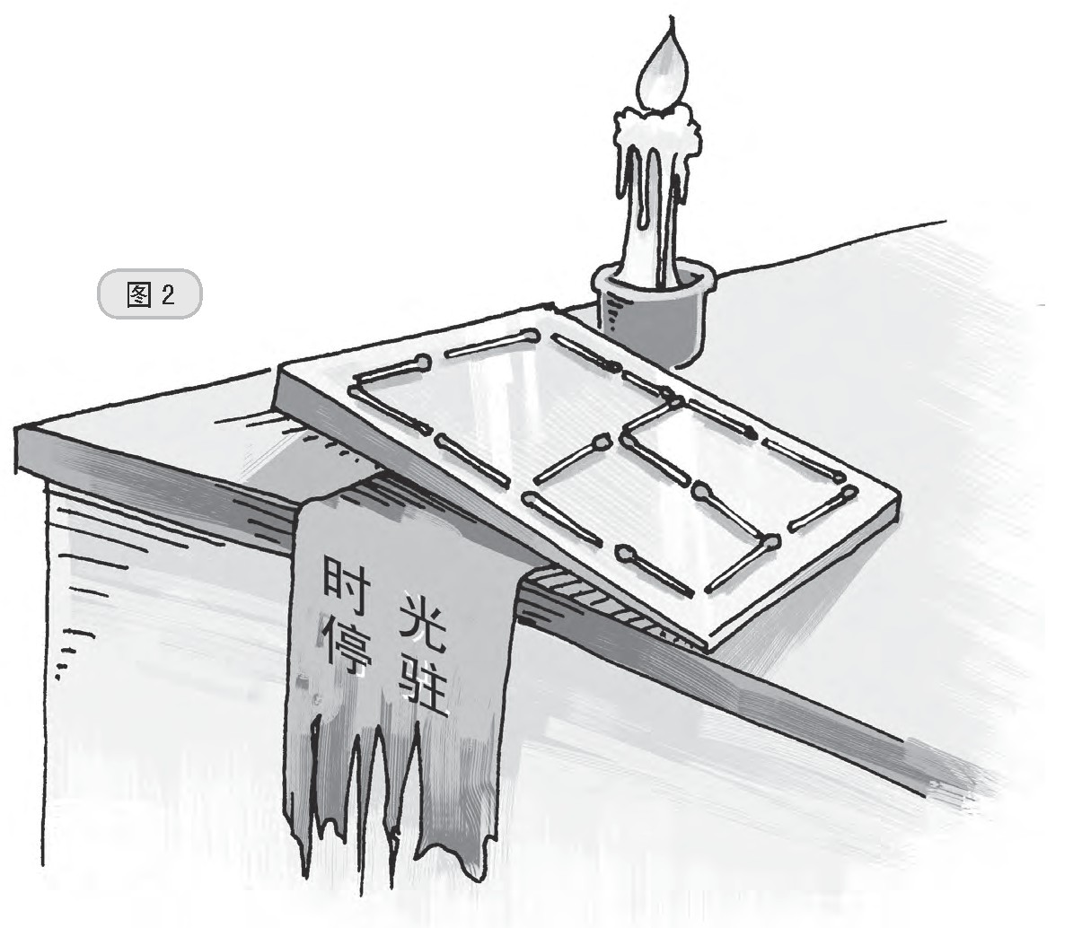 “伙伴们,快来看,书桌上摆着用火柴拼的图,旁边还有张纸条,上面写着:‘时光停驻’,请你移动3根火柴,将它拼成1991的字样。”王小泡告诉大家。