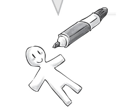步骤2 用水彩笔勾勒出小人儿的样貌或者五官。