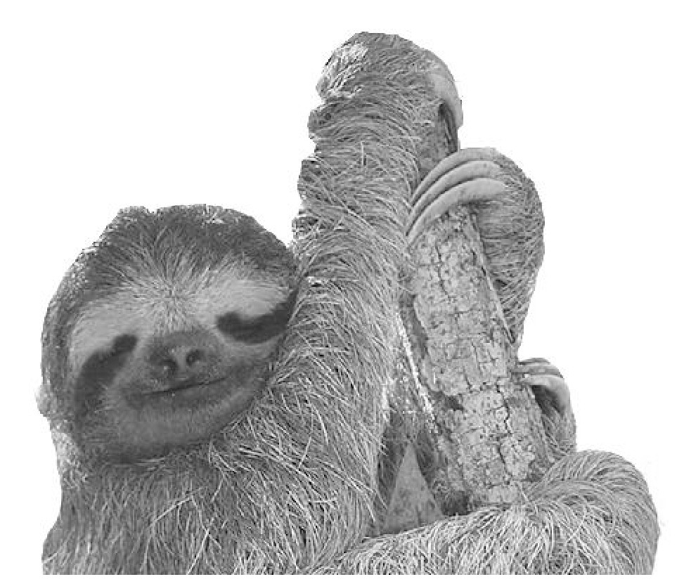 树懒的睡姿也很有趣。它从不平躺睡觉,而是倒挂在树枝上,头朝下,细长的爪子像钩子一样紧握住树枝,就那种姿势一动不动地可以保持好几天。由于长期生活在树上,又不爱活动,树懒都不怎么会走路。如果把一只树懒从树枝上捉下来放在地上,它会站不稳,走起路来也东倒西歪,让人忍俊不禁。有人估算过,树懒每小时在地上大概能“走”0.1千米,比龟还慢。所以称它是世界第一懒汉,实在是不足为过。