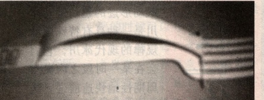 说明:当分饭菜时,叉入食物,推板会自动上升,这时的用法与用途与一般叉子没有什么不同,不同之处在于,当按下弧形推柄,推板下降,也推动食物下降,把食物从叉子上推掉。
