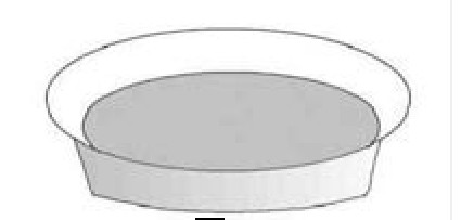 2.将淡蓝色的水倒入乳白色平底瓷盆里(水量只要能盖住盆底表面即可,不要太多,也不要太少),看上去盆底是一片淡蓝色的水(如图3)。