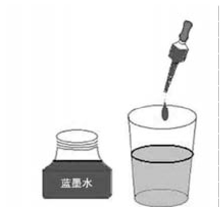 1.在塑料杯里装入半杯清水,并滴入几滴蓝墨水,使水变成淡蓝色(如图2)。