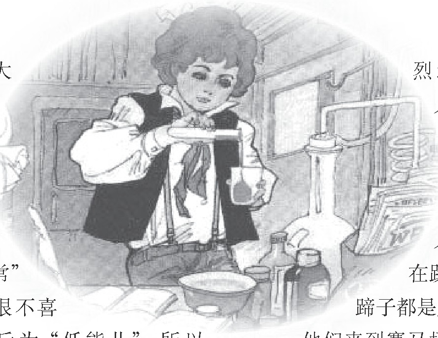 不过,爱迪生拥有一位优秀的“家庭教师”——他的母亲,面对儿子每天提出的一些稀奇古怪的问题她并不觉得厌烦,反而鼓励他多阅读、多思考。在母亲的悉心教育下,他进步得很快。为了揭开更多的奥秘,小小年纪的爱迪生就自己建立了一个化学实验室,并通过自己努力卖报购置了很多药品和实验器材。