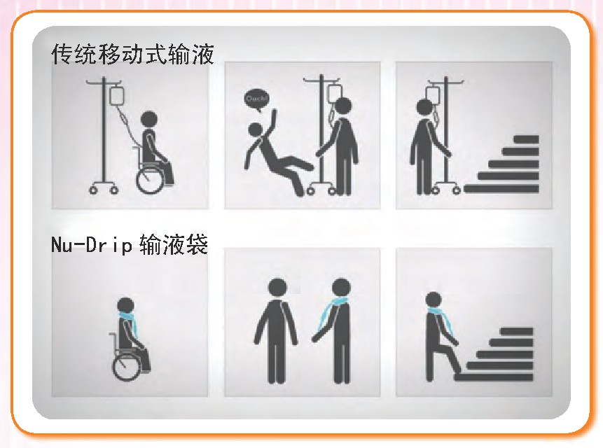 最重要的是,只需要把我从输液杆上拿下来挂到脖子上,人们在输液的过程中便可四处走动。这样不仅没有限制他们的自由,还保障了安全。