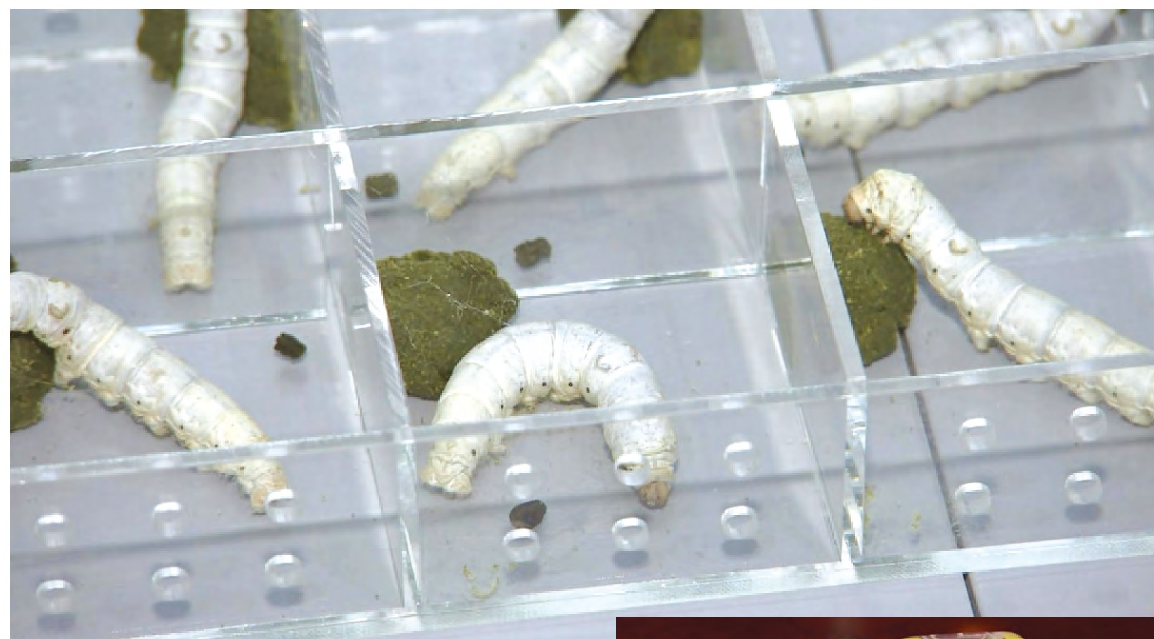 当航天员在忙碌的时候,6个特殊的“昆虫航天员”正在呼呼大睡呢!它们是6条身体强壮又可爱的蚕宝宝,名字特别好听,叫“秋丰白玉”,它们可是由中国科学家培育的改良蚕种。