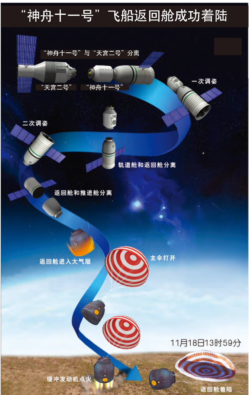 “神舟十一号”返回舱成功着陆示意图