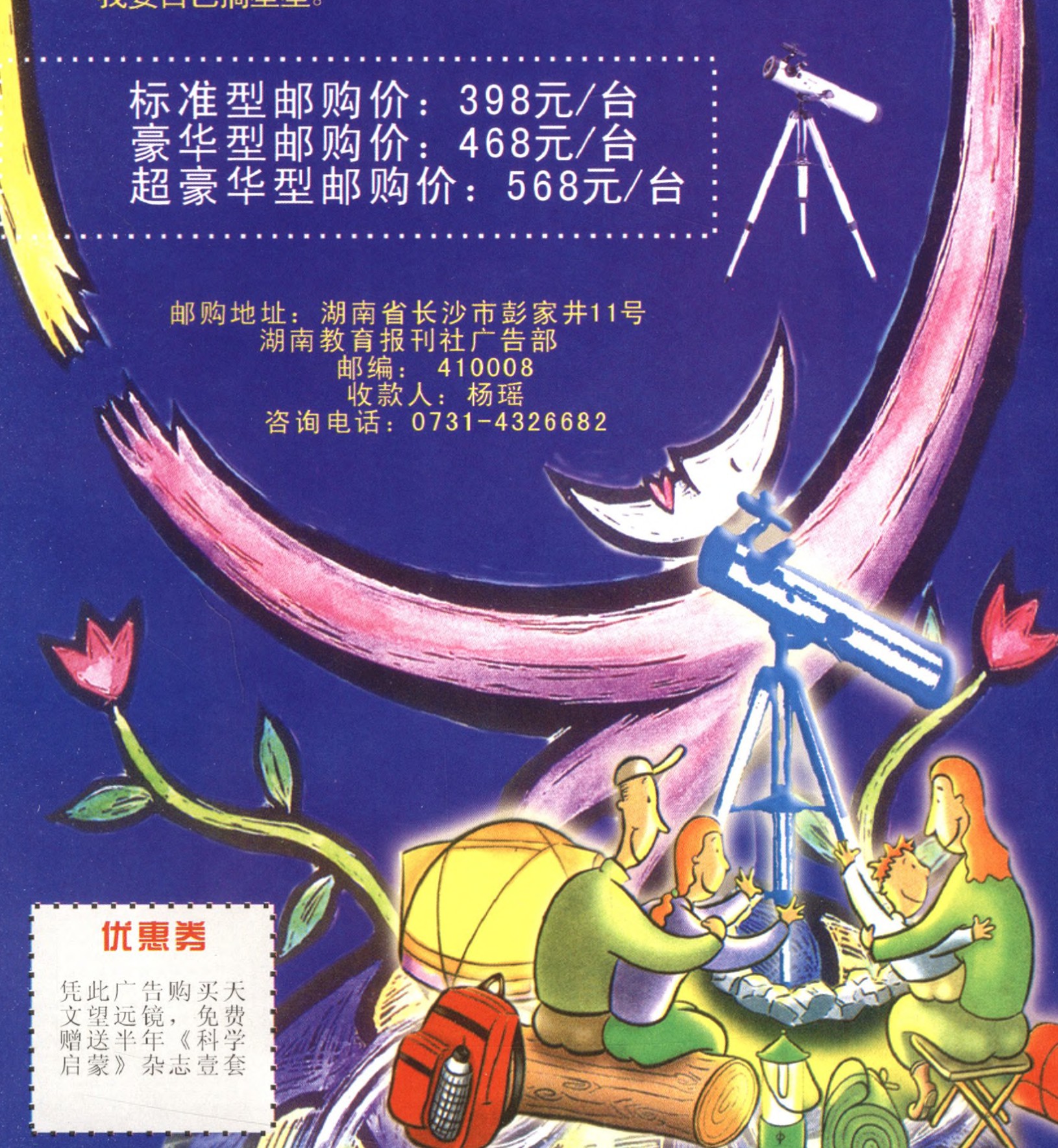 凭此广告购买天文望远镜,免费赠送半年《科学启蒙》杂志壹套