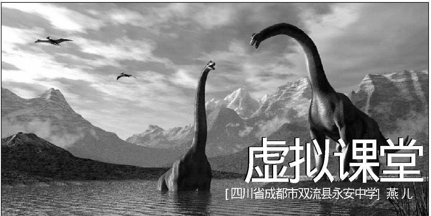 戴眼镜的秦老师跳上讲台:“各位同学早上好。太古洪荒年代,地球上曾居住着一群奇特生物一恐龙。它们称霸地球,生存了近15 000年之久,最后却奇怪地灭绝了。今天,我们所知的有关恐龙的一切,都是由恐龙化石得来的。现在,我们的科学家对当时的情景进行了模拟。请看一”秦老师拿起遥控器对着黑板一按。我和同学们已经置身于一群恐龙身边了。这里大大小小的恐龙可真多,有几只高大的恐龙正伸长脖子吃树上的嫩叶,在它们的身边,几只可爱的小恐龙正在绿油油的草地上滚来滚去。一些恐龙在河边喝水,另一些在河里畅快地游着……一派其乐融融的景象。