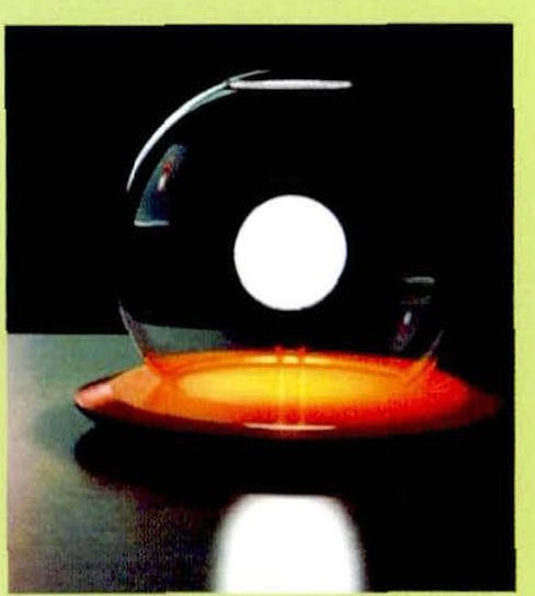 这款灯的金厲导线由两根装有盐水的玻璃管代替,以减少金属的消耗。它设有语音操作开关和一个金属盖以控制其运作,敲一下就可以打开台灯了。