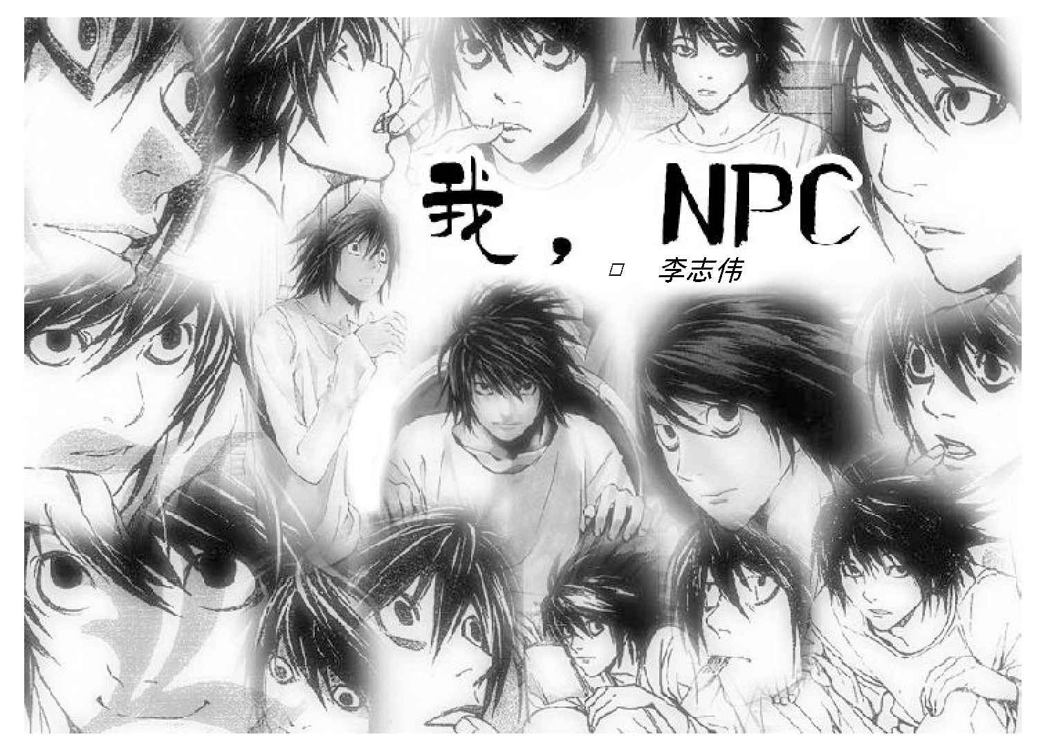 N P C,就是游戏中为实现某些功能而设的虚拟人物。最常见的就是商人啊、铁匠啊,说的话也很简单:“你好,请问要什么货物?”“我能铸出天下最好的宝剑。”等等。生活中若是有N P C,遇到突发情况,也容易出错吧?