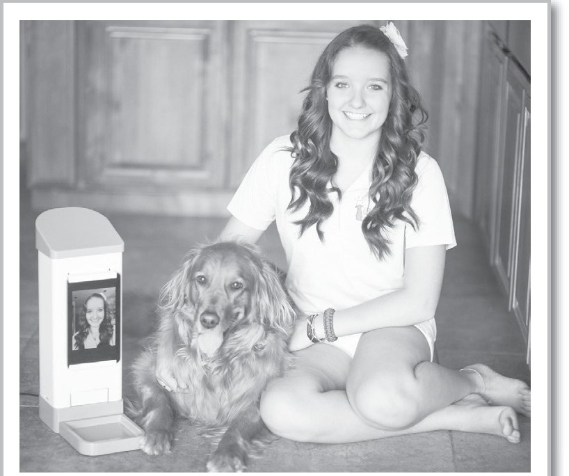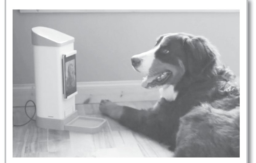 关主家的这台设备叫iCPooch互联网设备,这个设备是美国华盛顿一个15岁的女孩布鲁克·马丁设计出来的,她铁定是个爱护宠物的好主人!这款设备搭载着一种特别的计算机,还有一个可以拆卸的套筒,里面装着美味的狗粮。离开家的时候,只要主人有手机、平板电脑等能连接互联网的智能设备,他就能随时连接家里的iCPooch设备,看看狗狗自己在家的时候过得怎么样,还可以跟狗狗视频“聊天”,并且通过互联网的远程控制来给狗狗喂食。只要主人从自己的智能设备上发送“喂食”的指令后,iCPooch设备中的发动机就会被激活,打开套筒,把狗粮给狗狗吃。