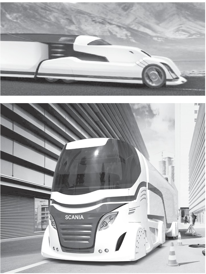 首先,小粗心说驾驶室看起来更宽敞,没错,它的前挡风玻璃采用了一体设计,还配有显示器,能让驾驶员有更好的视线。小好问注意到了车身的线条,未来卡车的线条圆润、流畅,符合空气动力学的设计,给未来卡车的运输工作帮了不少忙,这样它能在高速公路上跑起来更给力。小灵通说的很对,未来卡车确实是靠电力驱动的,它装配的是氢燃料电池,不会制造污染大气的废气。另外,这辆卡车的轮毂上有不同颜色的LED灯,可以直观的显示出卡车是不是超速了,或者有其他违规操作,路人和交警都能方便地监督卡车。未来卡车的设计是不是周到又贴心呢?