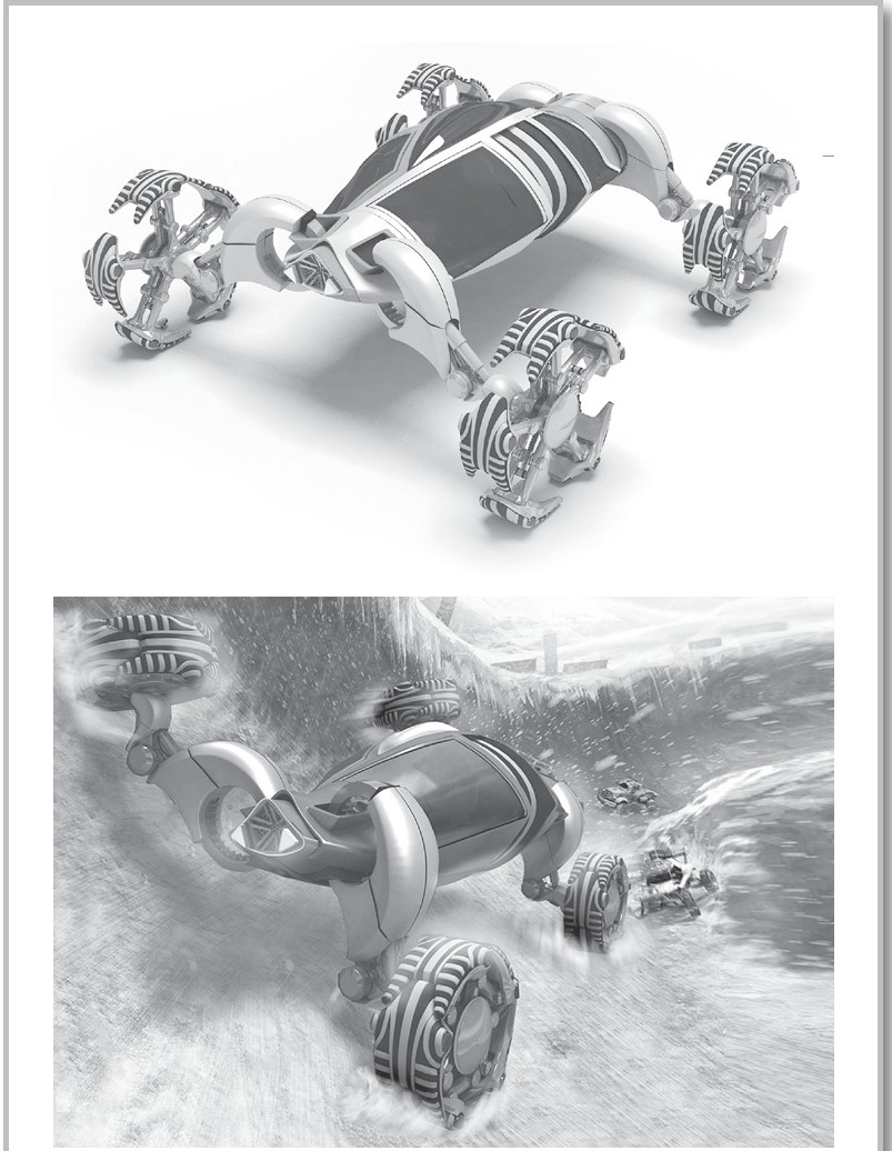 关主说:“我早猜到它会在这场障碍赛上拿冠军。这是中国设计师林智敏设计的未来概念跑车,真是酷毙了。”小先锋们都觉得这种跑车才适合做未来的交通工具,首先它那充满现代感、酷劲十足的外表,就能征服大家的心。“它什么地形都不怕,像泥地、冰面这样别的车不敢去的地方,它如履平地。你们猜猜它是怎么做到的?”
