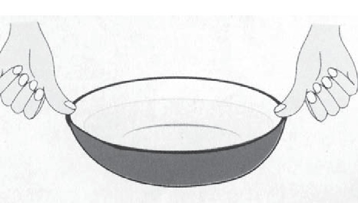 2用左右两手的大拇指,沿盆的边缘对称的两侧,各按边缘用力进行有节奏地来回摩擦。