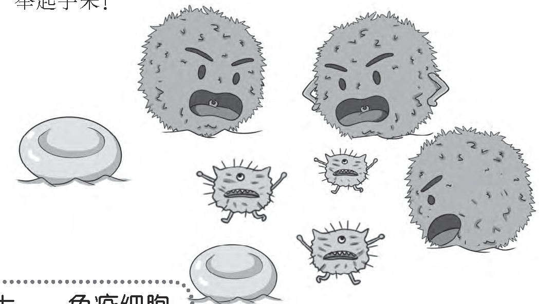 “白细胞还有一个名字——免疫细胞,顾名思义,作用是吞噬细菌、防御疾病。估计白细胞把我们当做入侵的坏东西——细菌了,想把我们吞下去处理掉。白细胞体积较大,数量较少,除非身体有了炎症,它的数量才会增加。”